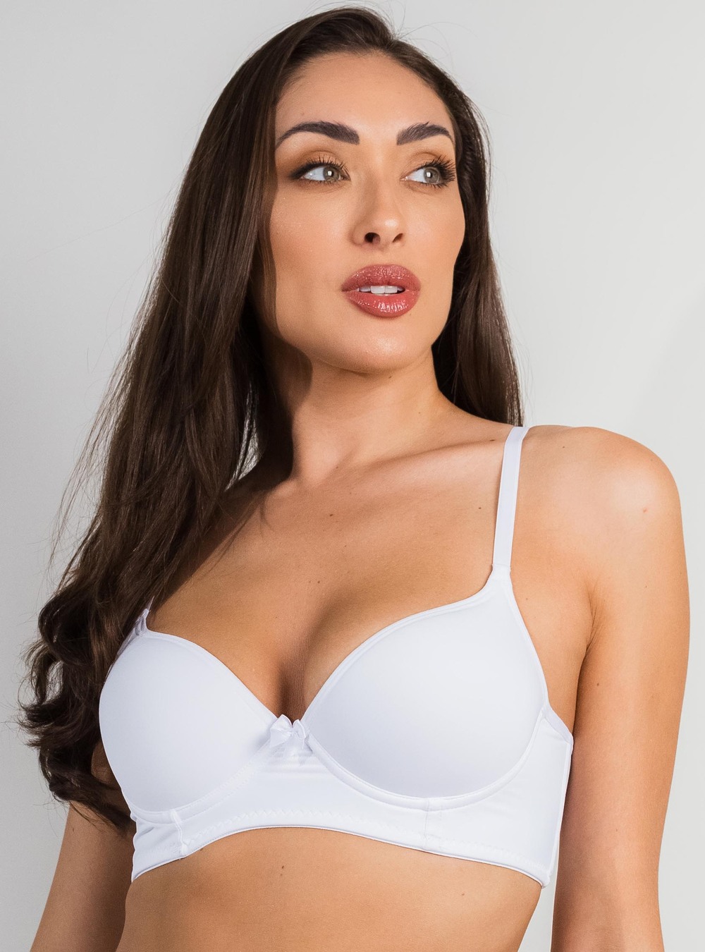 Composição do tecido: 92% Poliamida 08% Elastano Composição bojo: 60% Poliuretano (espuma) 40% Poliéster (tecido) Alça: 10 mm no tamanho 42; 13 mm no tamanho 44; 18 mm do tamanho 46 ao 52.